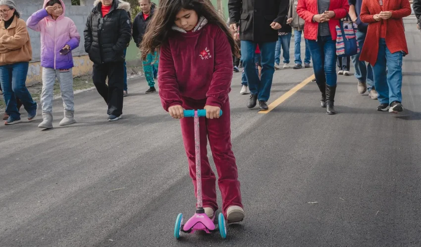 Con 8,200 m² de pavimento, esta acción mejora la movilidad y fortalece la seguridad, la dignidad y la calidad de vida de las familias que transitan diariamente por estas vialidades.