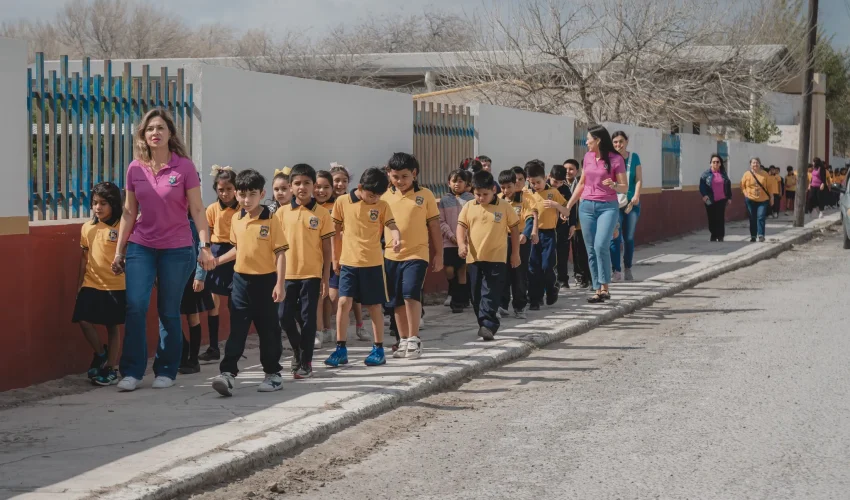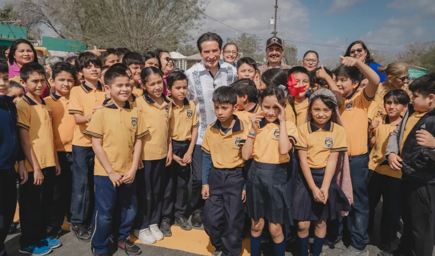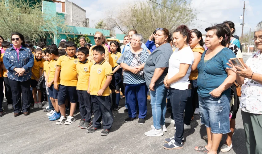 La pavimentación impacta de manera especial a los alumnos de la Escuela Primaria Juan Escutia, facilitando un acceso más seguro a su entorno educativo.